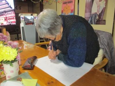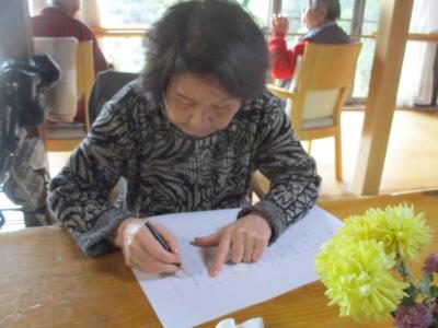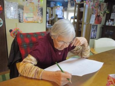頑張って、記憶を引き出し取り組む母です。