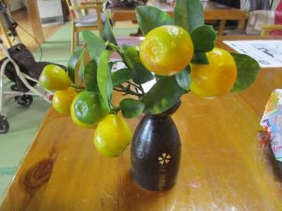 テーブルの上には、利用者様がお持ち下さった様々な果実が飾られています。