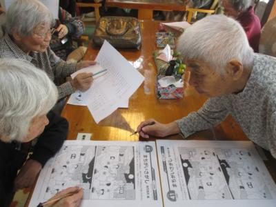 仲良く、助け合いながら間違い探しに取り組む母達です。