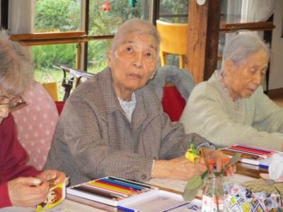 皆さん、思い思いに季節を感じながら色塗りされています。