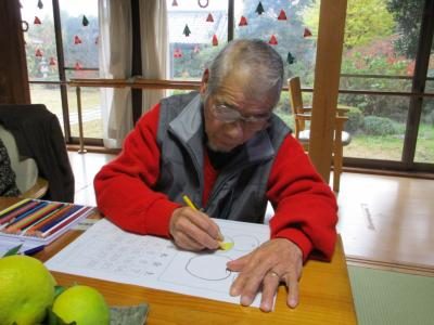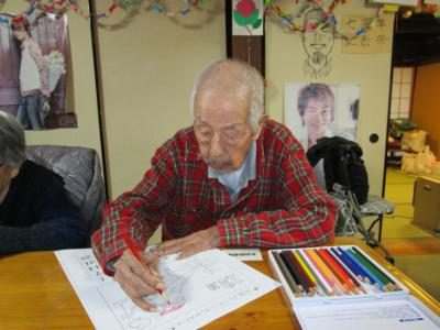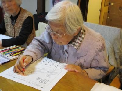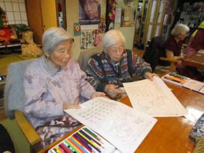 午後は、季節の暦の色塗りを行います。