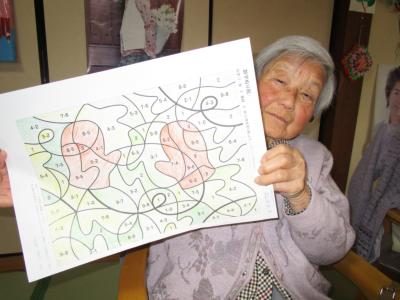 朝会後は、脳トレに取り組み脳活性ですひらめき
