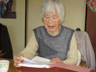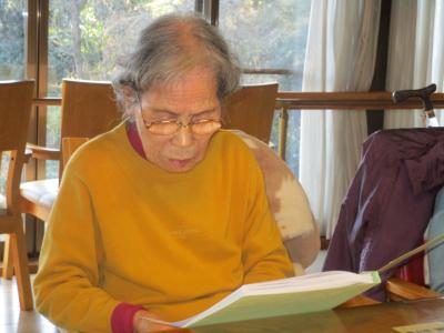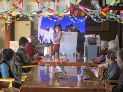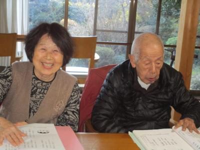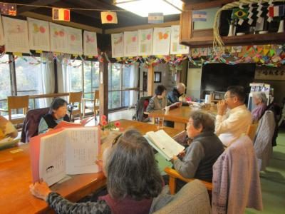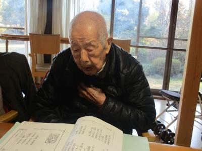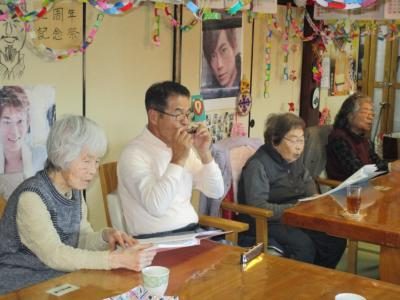 ハーモニカのメロディに乗って、歌詞カードを手に一緒に歌う皆さん♪
