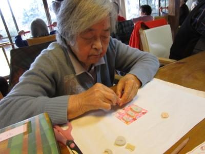 それぞれ好きな着物の色を選んで、根付け作りひらめき