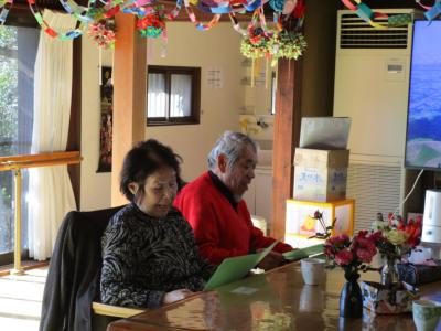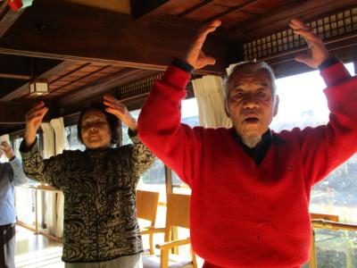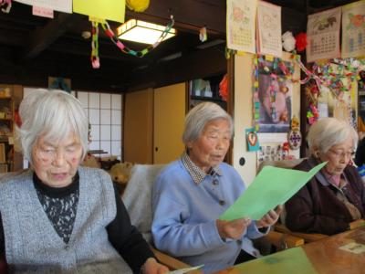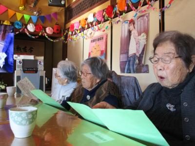 ぼけたらあかんの唱和・・・ 合唱では「春よ来い」を歌い、