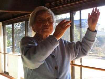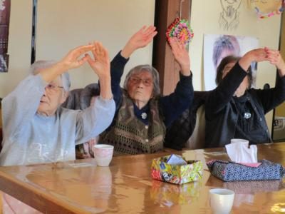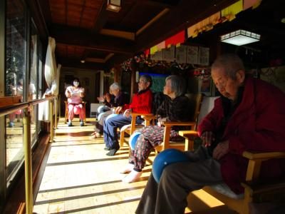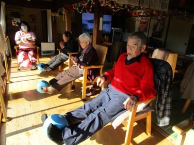 ポカポカの縁側では、筋力アップに励む皆さんの姿・・・