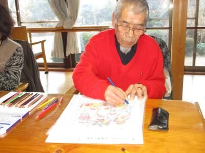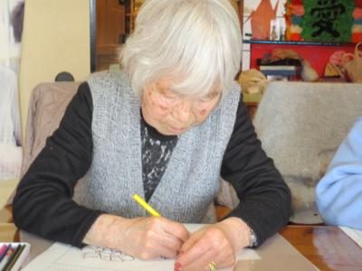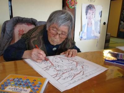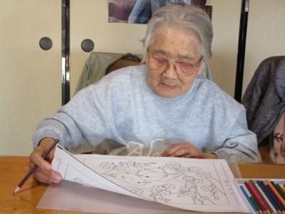 塗り絵が好きなお母さんは、新たな塗り絵に取り組みスタート
