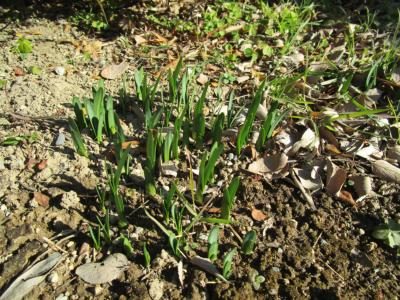 寒い大地の下で春を待ち、庭先の球根もあちらこちらで、芽を出し始めました!