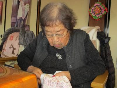 一針一針、せっせせっせと刺繍を縫い進める母・・・