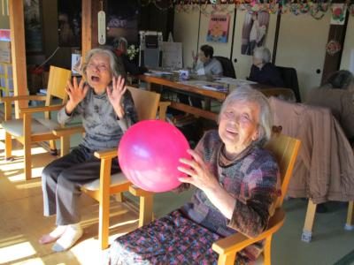 今日の機能訓練は天然の床暖房の上で汗だくになりながら