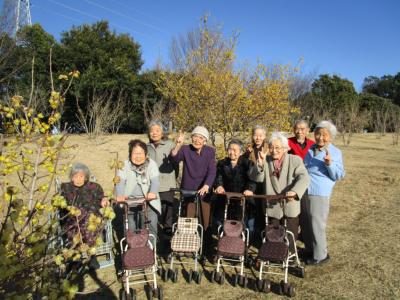 でも、きれいに咲いている蝋梅の前で集合写真