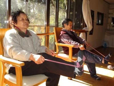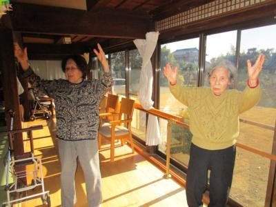 水分補給したら、チーム毎に分かれポカポカの縁側に