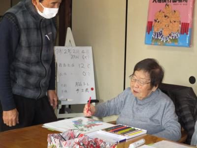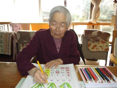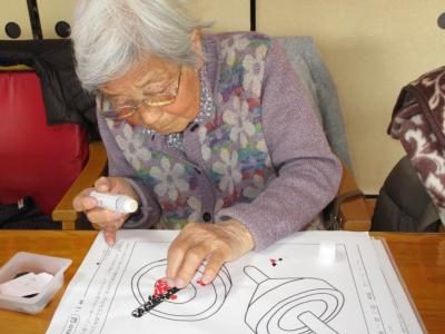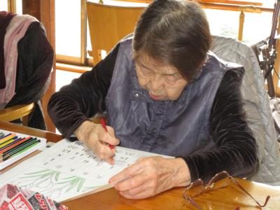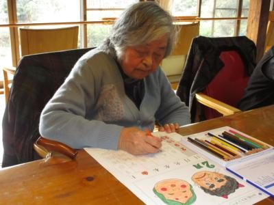 楽しい会話をされながら、季節の暦の色塗りを行う母達・・・