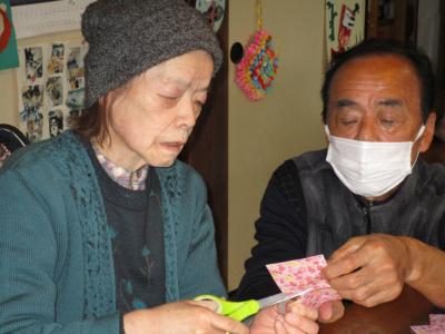 お母さんは、前回の途中からのちぎり絵に取り組まれ、早速集中して指先を動かしています。