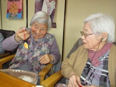 愛らしく出来上がった根付けに、早くも愛着たっぷりの御様子のお母さん♪