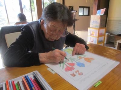 ちぎり絵やカレンダー塗り絵に集中されていましたdouble exclamation