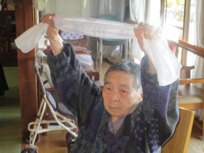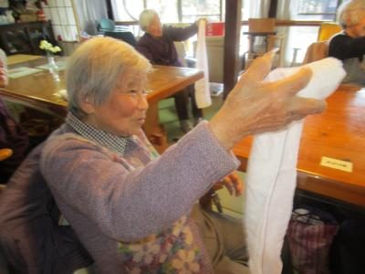 片手でタオルを手繰り寄せていきますー (長音記号2)ー (長音記号2)