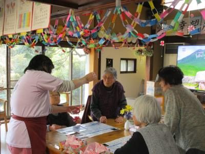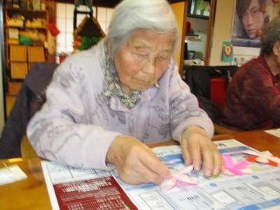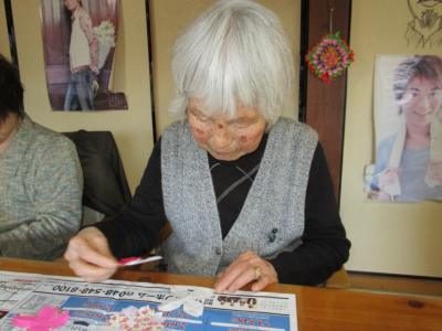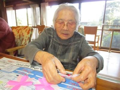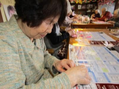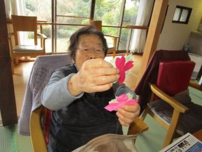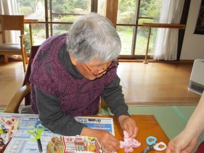 沢山の折り紙で、折って、切って広げて・・・繰り返しの製作作業も皆さん枚数を重ねる毎に大分手慣れてきたようです。