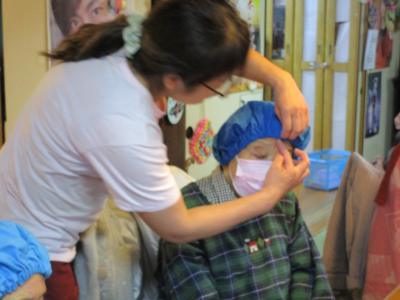手洗い消毒をしっかり行い身支度も協力し合って整えます