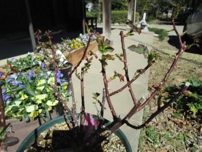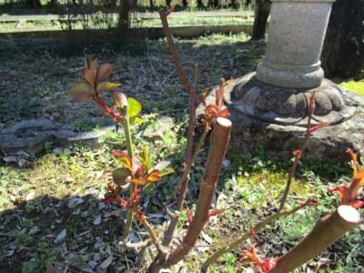 今年は暖冬だったので早くもバラの新芽がワサワサ