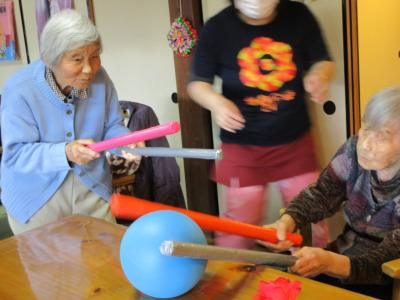 くみちゃん特性のカラフル棒を使ってボールリレー