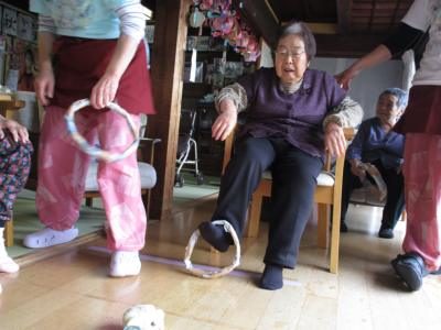 上手に輪っかが飛んでく方も居れば、足から離れない方もうれしい顔