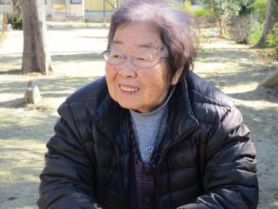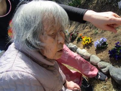 椅子に腰掛けて暫し休憩の母ほっとした顔