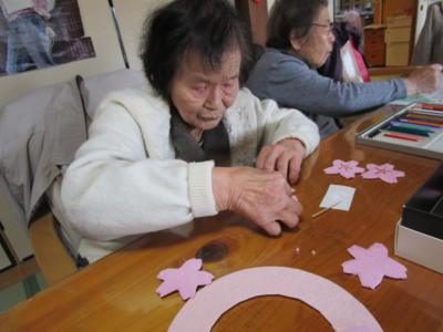 今月の製作 桜のリース作りに取り掛かりましょう