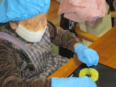 フルーツ担当の母達のにはパイナップルを一口大に切っていただいています