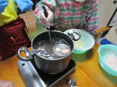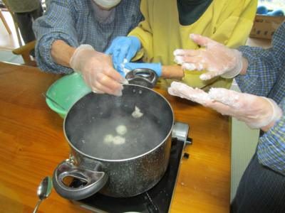 沸騰したお湯の中に白玉を投入