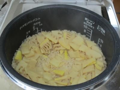 今日は、昨日 初収穫したタケノコを使って、たけのこご飯を炊きました