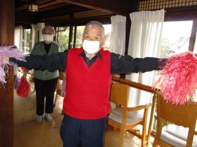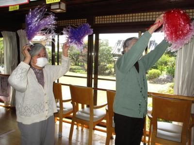 歌謡体操では、ボンボンを両手に楽しく身体を動かしました