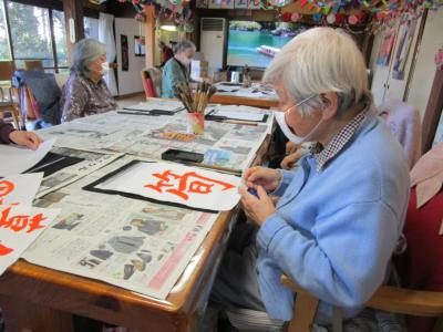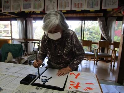 今の時期にふさわしい、季節の文字でのお習字で楽しい書道の時間を過ごす事が出来ました!
