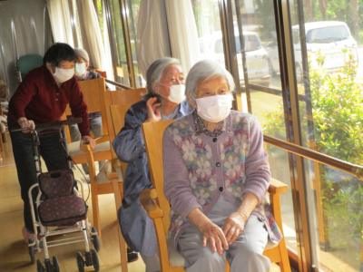 お庭を眺めながら順番待ちの母