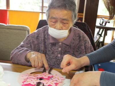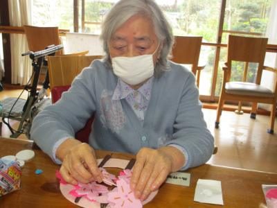 一つ一つ丁寧に作った桜を土台に貼っていきます