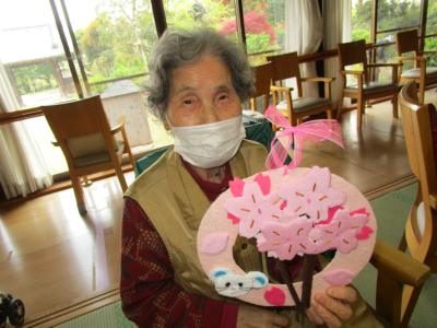 完成した桜のリースをご覧ください