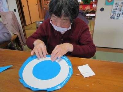 厚紙にボンドを付けていきます
