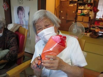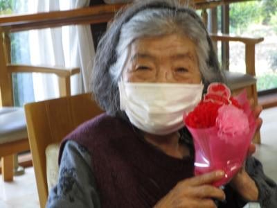 おやつの後には、スタッフお手製のカーネーションを感謝の思いを込め、一人一人にプレゼントプレゼント
