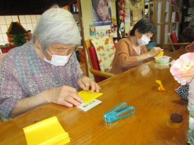 色々な色のお花が必要なので、折る人・広げる人と分担して協力し合って