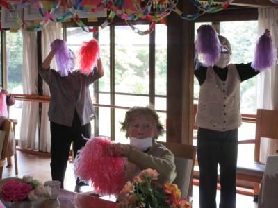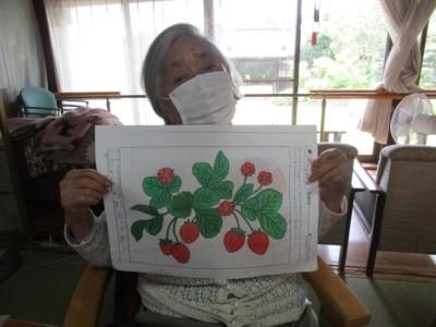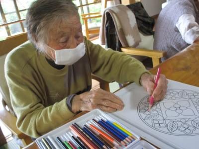 午前中は脳を活性化する塗り絵や機能訓練を行いました