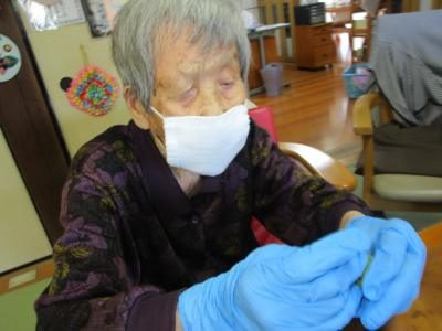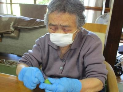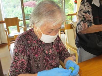 楊枝を使ってヘタの縁をなぞるようにするとスポッと
