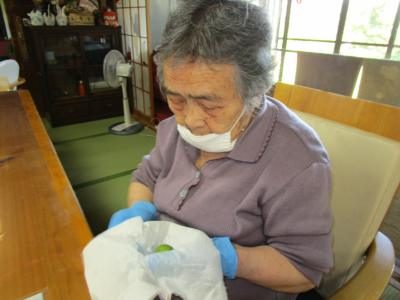 再度水洗いした青梅の水気をよく拭き取ります。