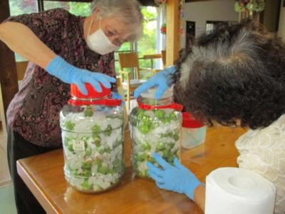 毎年オーナーから頂いている青梅で梅ジュースを作り、
