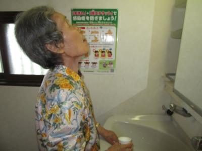 手洗いの後には、うがいもしっかり行いますよ指でOK