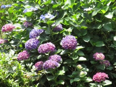 つい数日前まではピンク色だった紫陽花が、ムラサキ色に変化しています。