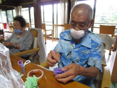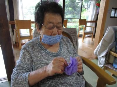 お花紙を一枚一枚丁寧に捲り、綺麗なお花を製作の母・・・