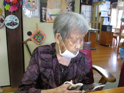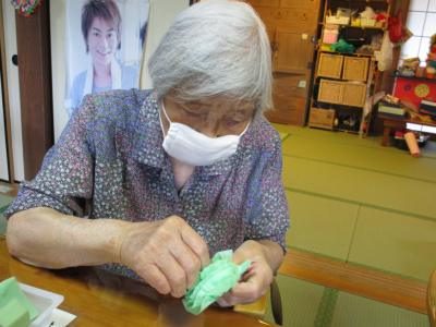 今日も、仲間と一緒に手工芸のお時間を共有しながら                笑顔溢れる第二の我が家【愛の幸望庵】にて楽しいひと時を過ごされました。