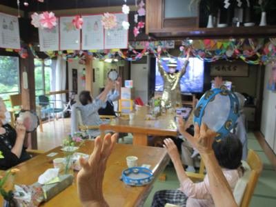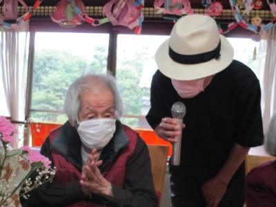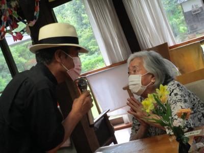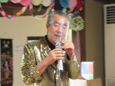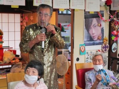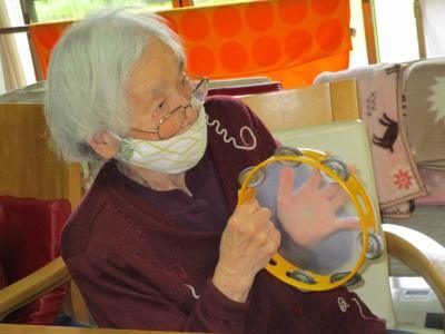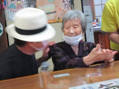 暑い中感染防止の為フェイスシールドを付けて歌って