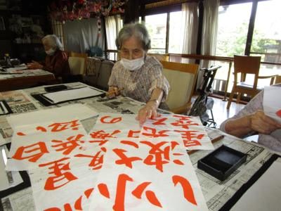 皆さん、お手本をもとに筆を執られ、熱心に取り組まれていました。
