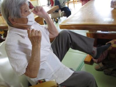 お富さんの歌を歌いながらリズミカルに手拍子をして